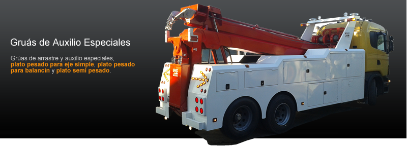 Plato pesado para eje simple, forman parte de las grúas de remolque pesadas, este tipo de grúas de arrastre pueden manejar fácilmente cualquier tipo de vehiculo. Destinadas al transporte de vehículos pesados. Cuenta con cajones de herramientas, calzas para el arrastre, etc. |